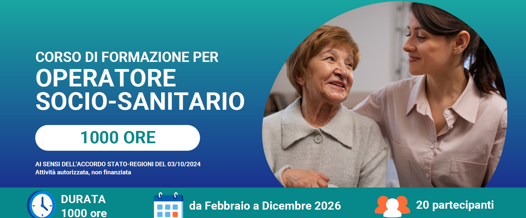 Il corso si svolgerà nel periodo Febbraio – Dicembre 2026 per un totale di 1000 ore.